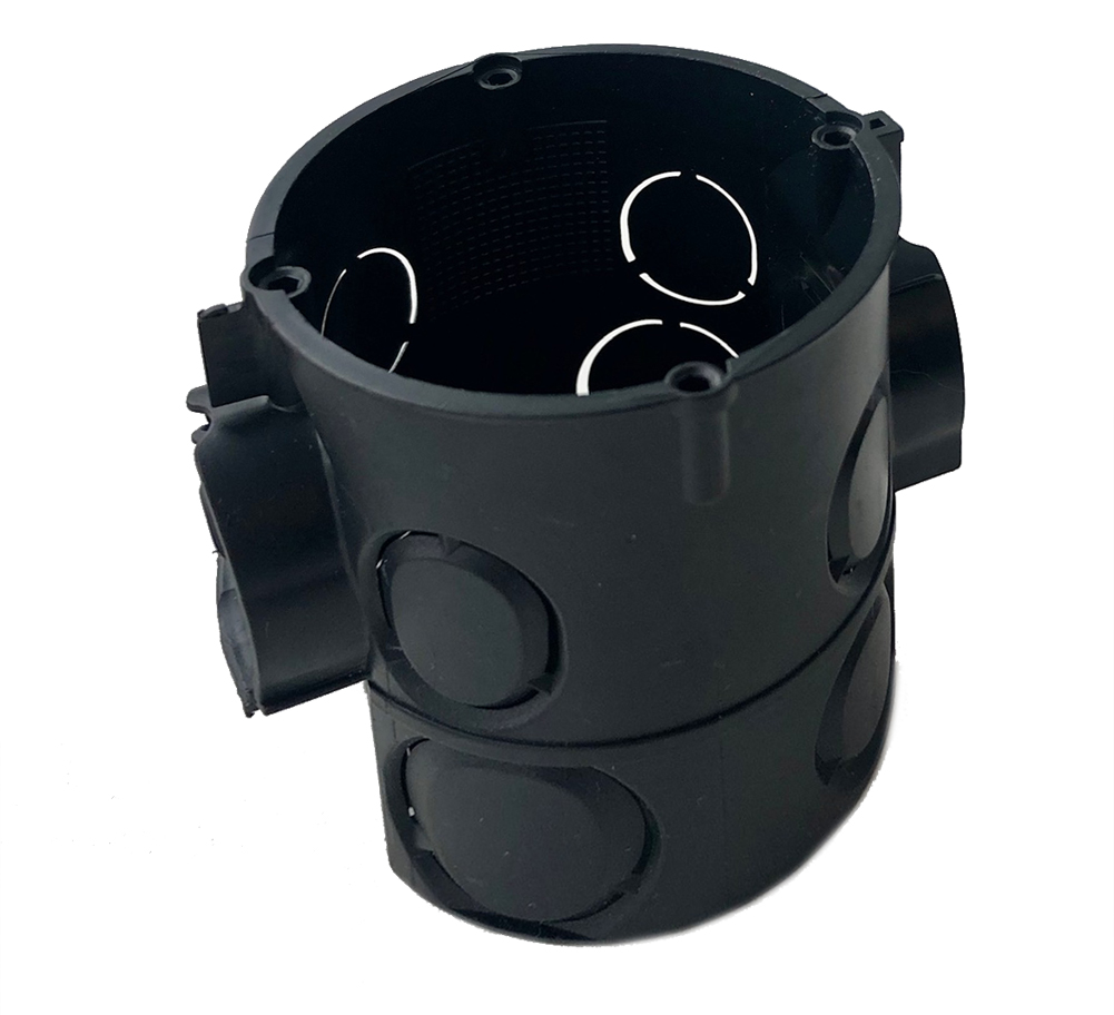 Kaiser 1555-04 runde Wanddose für Mauerwerk, 2 Module. Mit ausbrechbaren Öffnungen für Leitungen und Rohre bis 20 mm Durchmesser. Garantierter Norm-Kombinationsabstand von 71 mm. Für die Gerätemontage mit Schrauben (mitgeliefert). 60 mm Abstand der Geräteschrauben (Norm). Material: Polysyrol, flammwidrig, halogen- und silikonfrei.