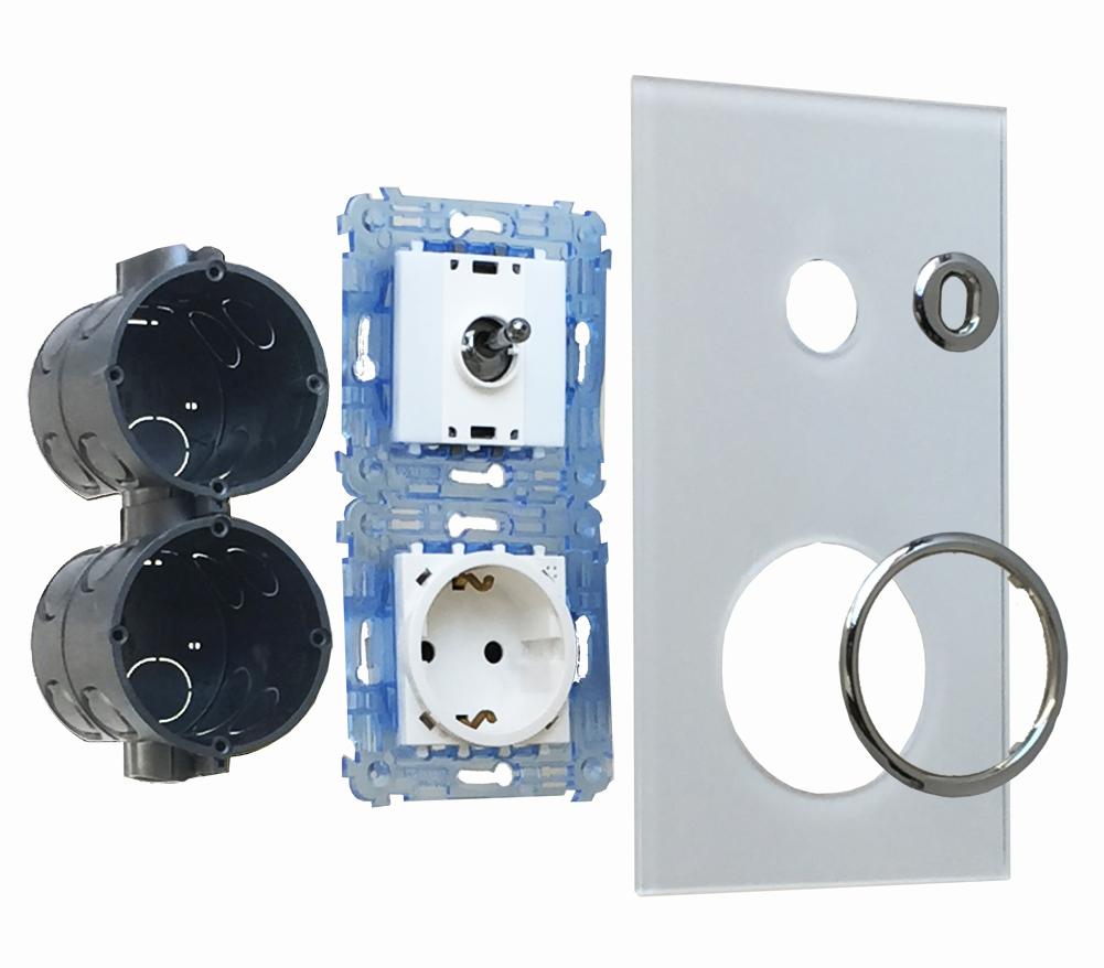 The retro switches are mounted in existing wall boxes with 2 screws (supplied without wall boxes). Wall box depth min. 45 mm. Depending on the selected variant, either one or two toggle levers are installed next to each other in the wall box. Required installation material is automatically included free of charge.