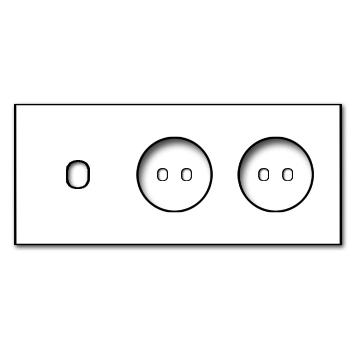 Horizontal für 3 Schalterdosen: Höhe 90 mm x Breite 244 mm